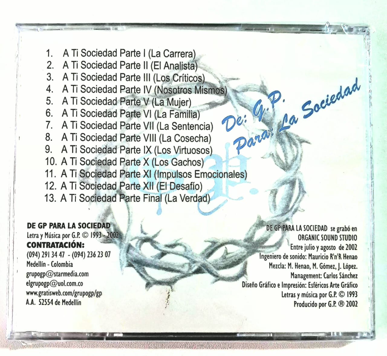 G.P. – De G.P. Para la Sociedad Label: Viuda Negra Music Format: CD, Album Country: Colombia Release Date: 2024 Style: Punk Barcode: N/A Condition: New & Sealed